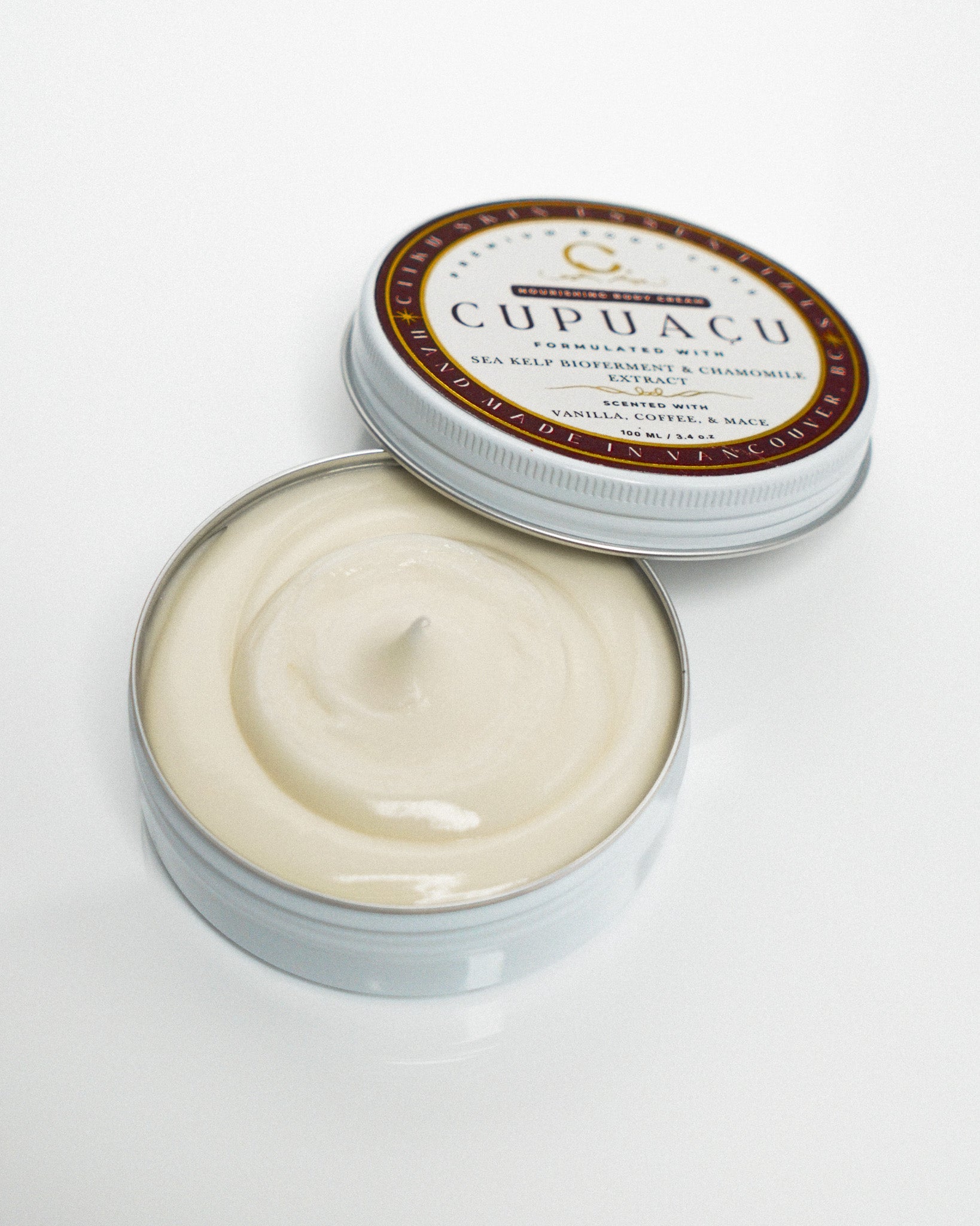 CUPUAÇU: Aqua, Theobroma Grandiflorum (Cupuaçu) Seed Butter, Cetearyl Alcohol, Cetearyl Glucoside, Theobroma Cacao (Cocoa) Seed Oil, Lactobacillus/Nereocystis Luetkeana Ferment Filtrate (Sea Kelp Bioferment), Glycerine, Propanediol, C13-15 Alkane, C15-19 Alkane, Isopropyl Myristate, C10-18 Triglycerides, Salix Nigra (Willow) Bark Extract, Raphanus Sativus (Radish) Seed Extract, Cetyl Alcohol, Chamomilla Recutita (Matricaria) Flower Extract, Coffee Arabica (coffee) Seed Oil, Xylitylglucoside - Anhydroxylitol - Xylitol, Panthenol, Tocopherol, Hydroxyethyl Acrylate/Sodium Acryloyldimethyl Taurate Copolymer, Acacia Senegal Gum, Xanthan Gum, Benzyl Alcohol, Salicylic Acid, Sorbic Acid, Sodium Phytate, Citric Acid, L-Arginine, Vanilla Planifolia fruit extract, Myristica Fragrans (Mace) Oil, Eugenol, Limonene, Linalool.